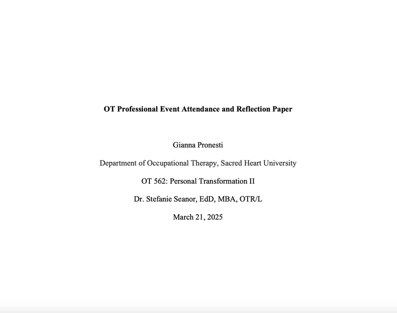 14th April 2025 OT Professional Event Attendance and Reflection Paper: OT 562: Personal Transformation II