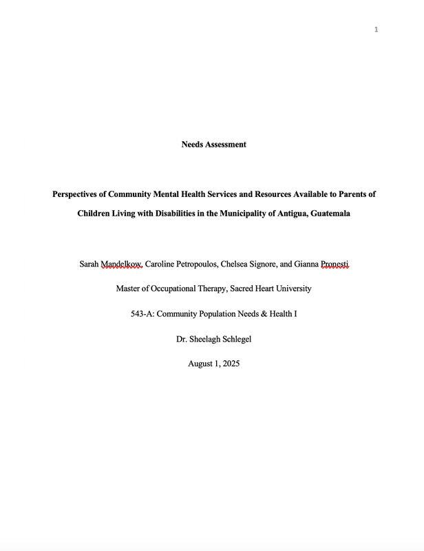 4th August 2025 Needs Assessment: Perspectives of Community Mental Health Services and Resources Available to Parents of Children Living with Disabilities in the Municipality of Antigua, Guatemala